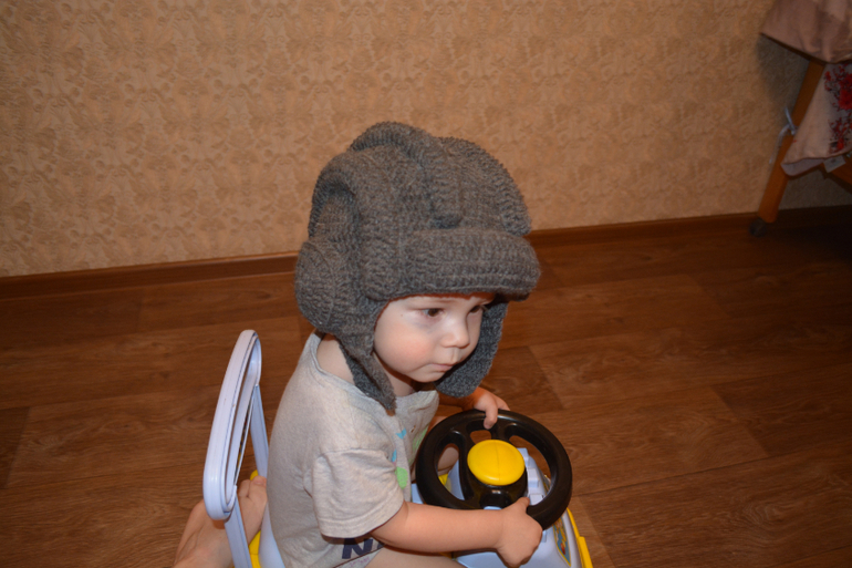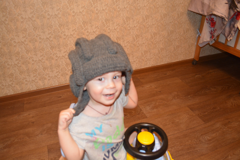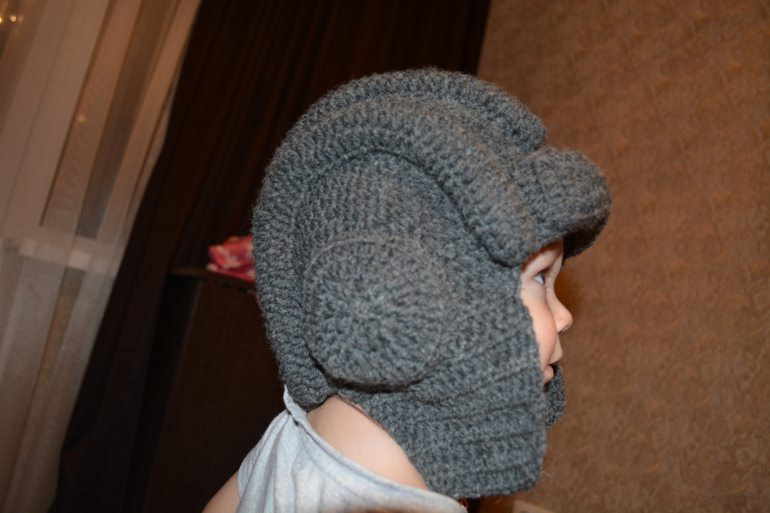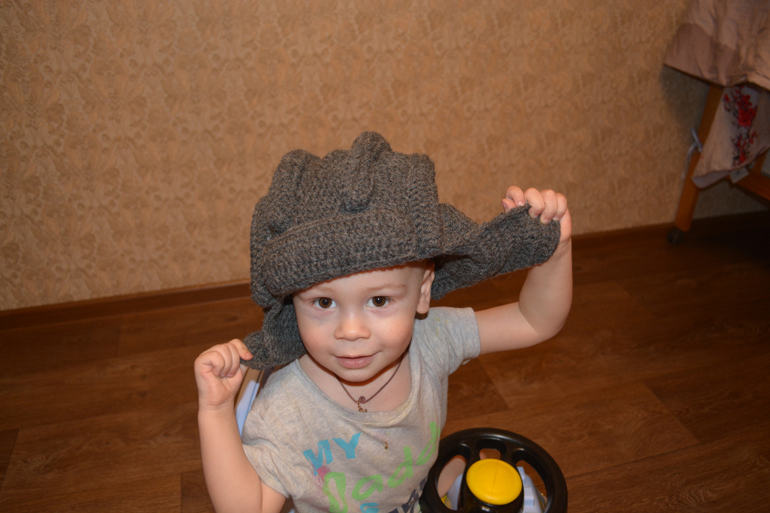 Связан для сыночка Екатерина . Катя пожелала чтобы шлем был не совсем декоративный и при желании можно было одеть на прогулку. Шлем без подклада. Использованы мягкие ниточки которые совершенно не коле
