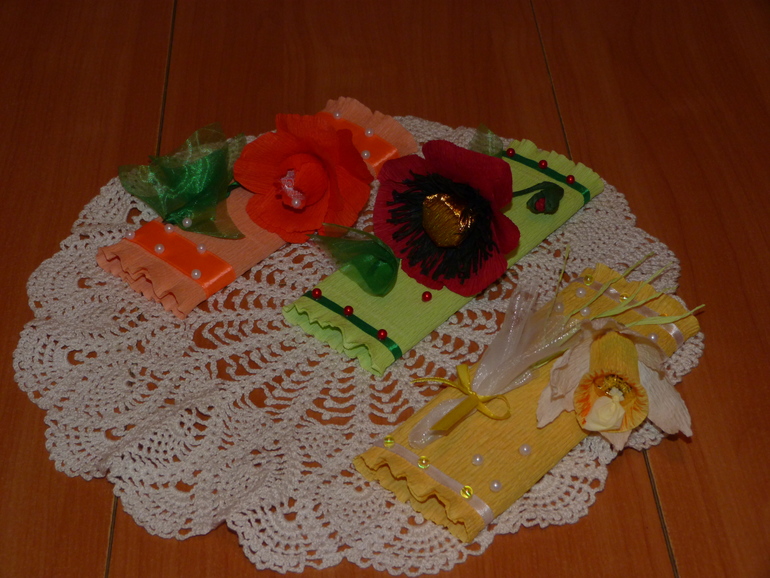 Букеты из конфет. Свитдизайн.Готовлюсь к 8 марта . Вот какие шоколадки получились, в дополнение к основному подарку для подружек. Под катом много фото.