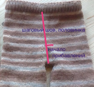 добрый день! расскажите, как связать что называется шаговый шов (место между штанин)?
