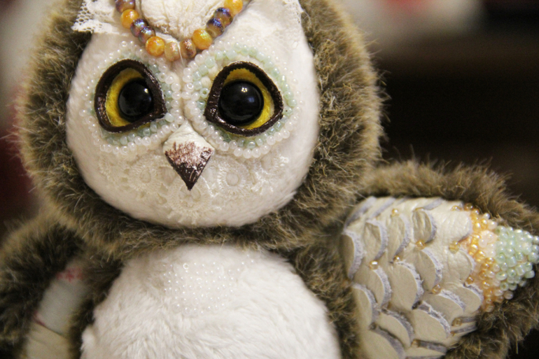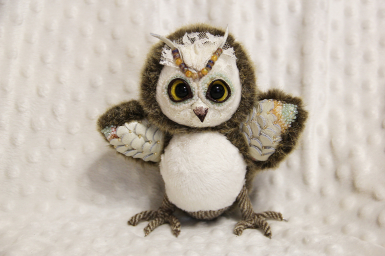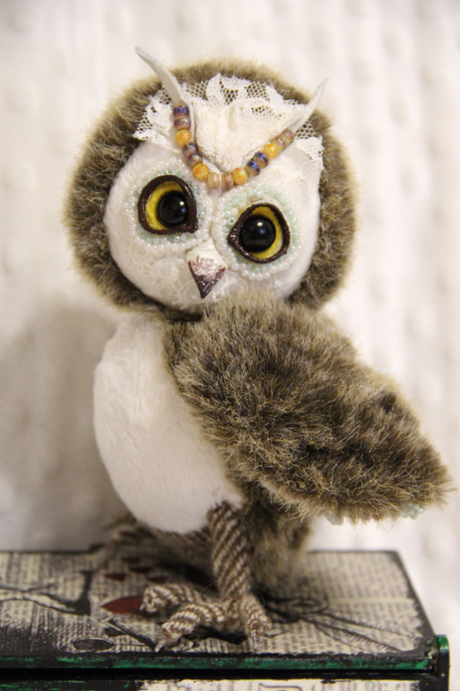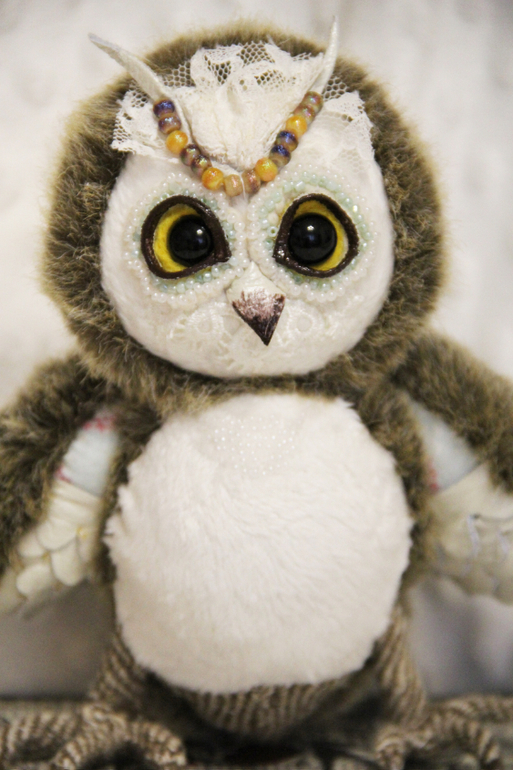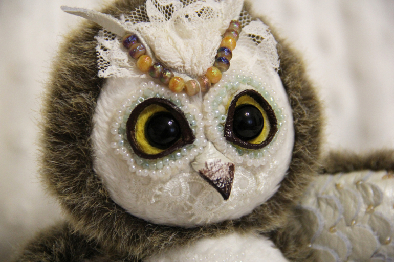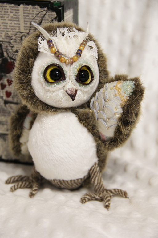 Тедди: мишки и их друзья.Эта совушка шилась для конкурса в инстаграм, результаты будут известны еще не скоро, а я к Вам за советом... В общем задание такое - сшить фактурную совушку с использованием самых различных материалов, и обязательно хоть одну бисеринку пришить. ну и чтобы выкройка и идея была своя...