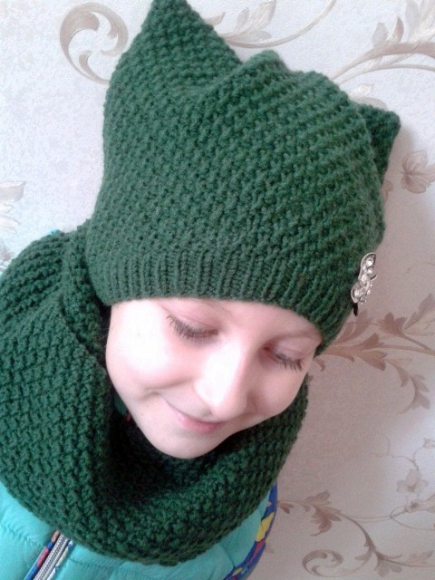 Вязание спицамиСвязались у меня вот такие шапочки-кошечки и снуды к ним) Пряжа очень приятная и не колючая)
