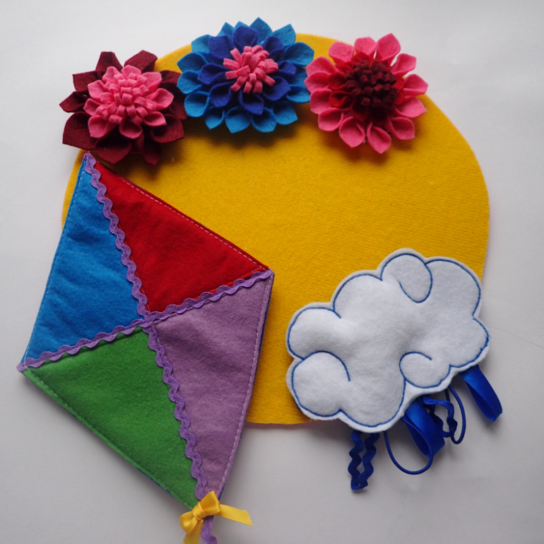 Основа солнышка - велькро ткань, к которой крепятся на липучках все элемент (21 штука). Для инфо - детские ботиночки на липучках также делаются по аналогичной технике (одна часть велькро, другая липучка).