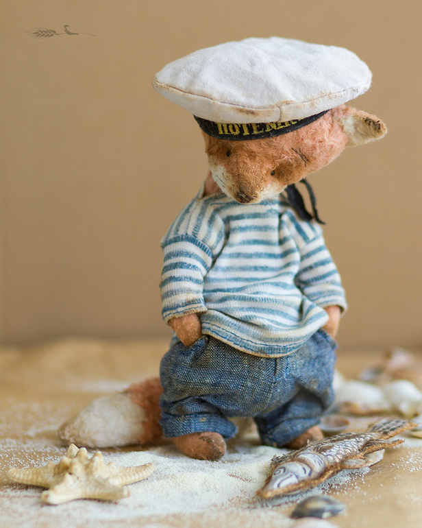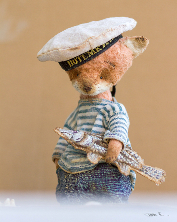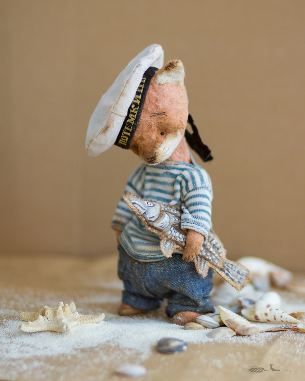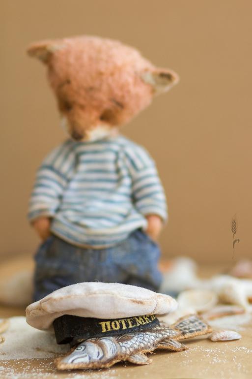 Лисенок Тёма с "Потёмкина." Хоть и маленький, но бывалый морячок. С ним друг - Рыба. Поскольку брюшко Тёмы набито опилками, Рыбу он не ест, он с ней дружит. А поскольку Рыба набита синтепоном, она легко обходится без воды и с радостью отвечает на дружбу Тёмы)