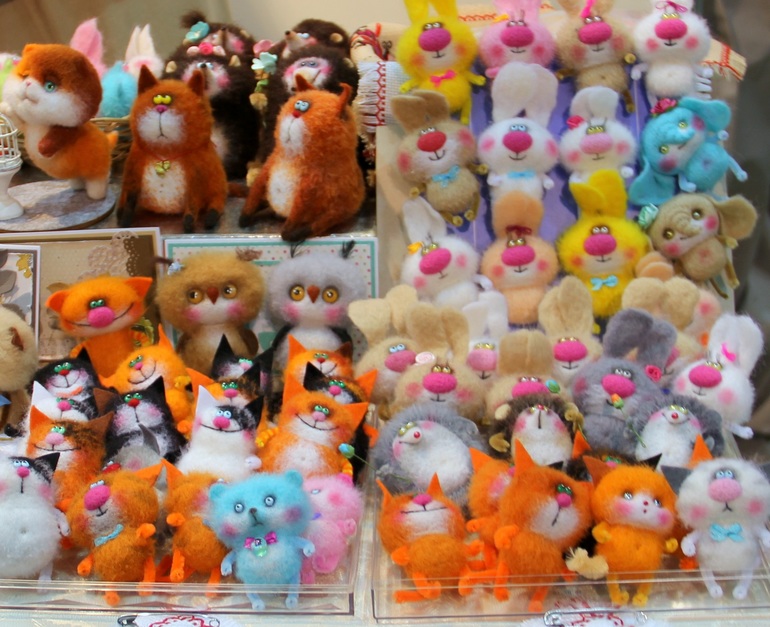 Добрые, очень веселые и милые валяные игрушки в ладошку - ежики чудесные, зайцы нереальные - очень порадовали.