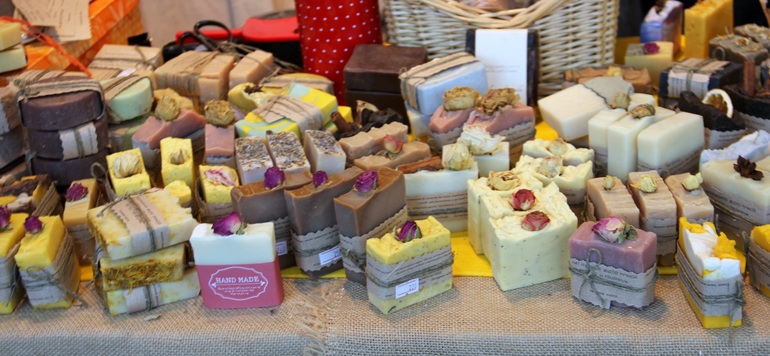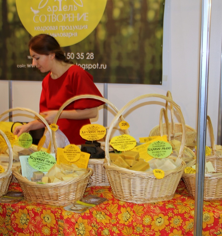 Другой стенд с мылом. Торговля шла бойко. Понятно, что многое зависит от места - на углах, у входа, на "главных аллеях" толпится больше народу, чем в дальних концах зала. Тут был аншлаг, хотя с предыдущего фото стенд понравился мне больше.