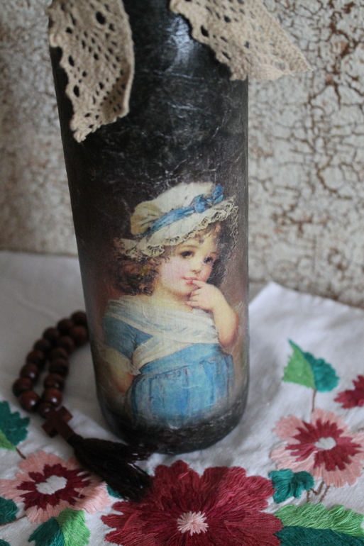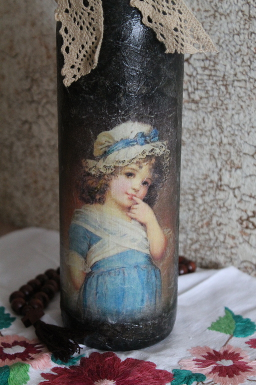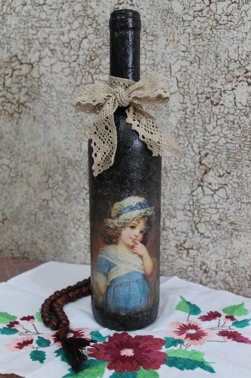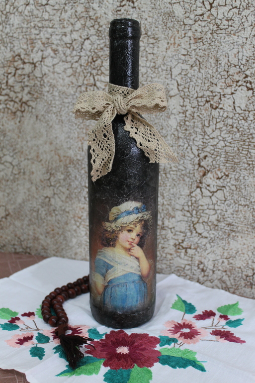 ДекупажДля наших друзей в подарок украсила бутылочку вина. А заодно поучаствовала с данной работой и в конкурсе...