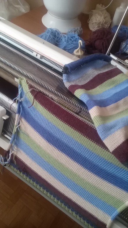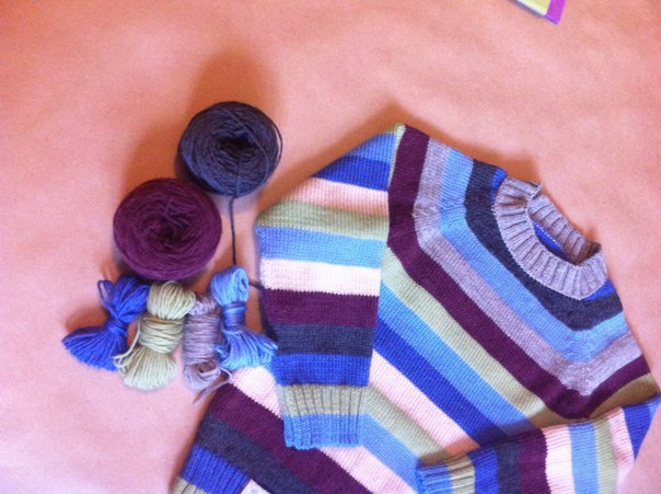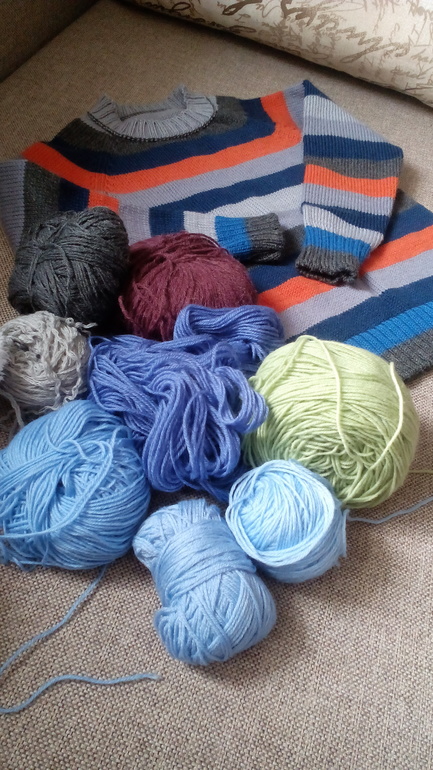 Машинная вязка (РАБОТЫ И СХЕМЫ).. больших и маленьких клубочков. Собрала кучку, взвесила- по граммам хватает на свитер, но как правильно разделить на полоски, тут у меня была паника, особенно на втором рукаве. Два цвета ушли просто под ноль!