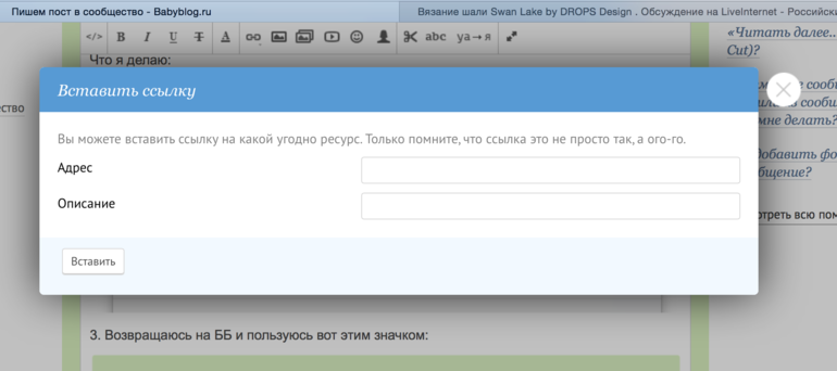 Модераторская (сюда пишут только модераторы)Девочки, очень часто возникает такая необходимость как дать ссылку на другой ресурс, например на сайт с описанием или схемами, да даже отсылая к себе в дневник на конкретный пост, мы тоже даём ссылку. Давайте поучимся это делать грамотно в нашем сообществе!