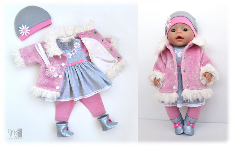 Шитье одежды, выкройки, ремонт одежды, шторы, швейные машины (уже приобретенные)Новенький комплект в серо-розовых тонах, состоит из шести предметов: пальто, платье, лосины, шапочка, повязка на голову и сапожки.
