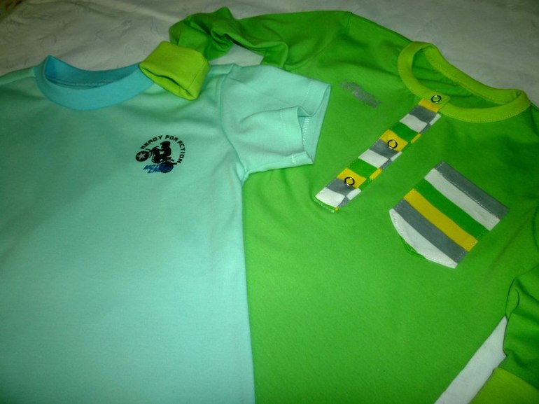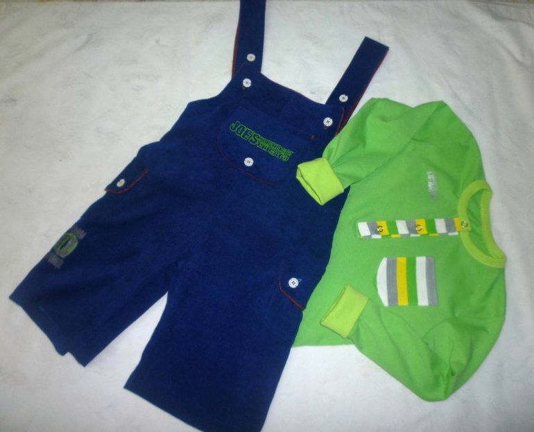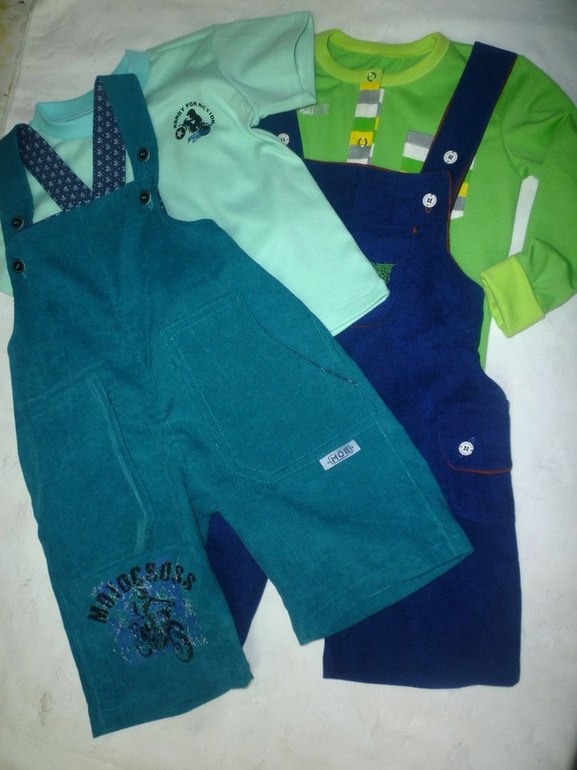 Шитье одежды, выкройки, ремонт одежды, шторы, швейные машины (уже приобретенные)Два комбинезона из микровельвета и две футболочки из интерлока на рост 98