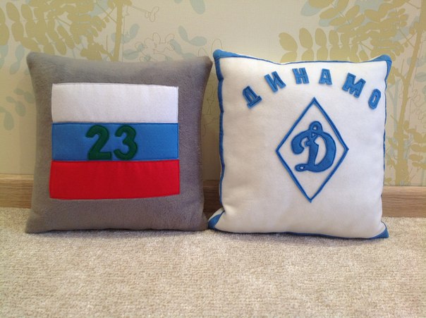 ФетрРешила сшить папе и брату( он у меня фанат Динамо) в дополнение к основному подарку на 23 февраля подушки из флиса. Флаг, цифры. буквы и эмблема динамо из фетра. Под катом еще фото)
