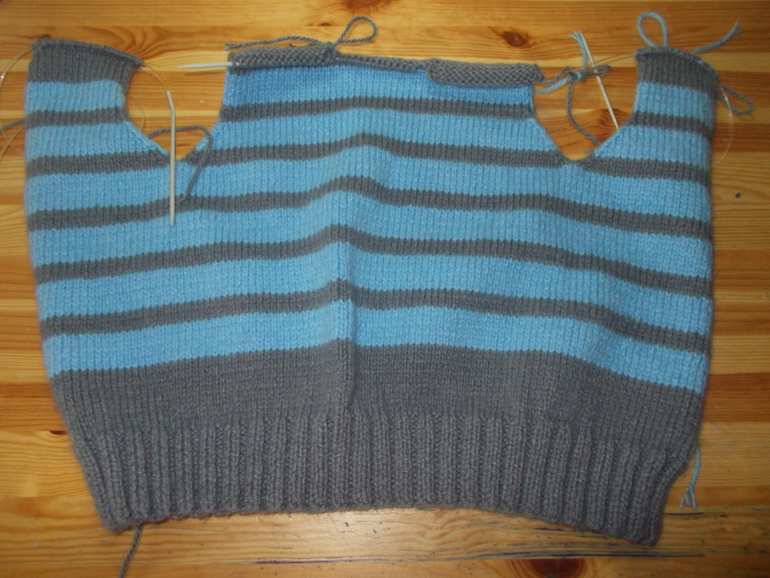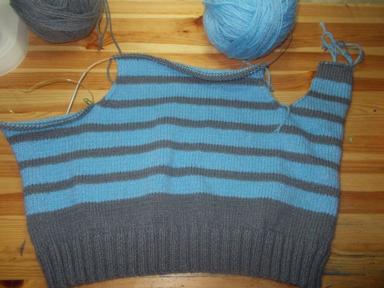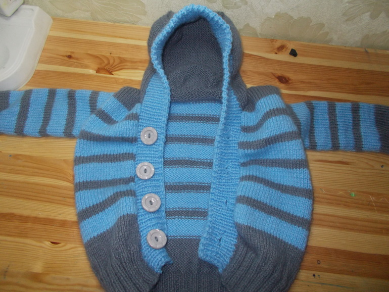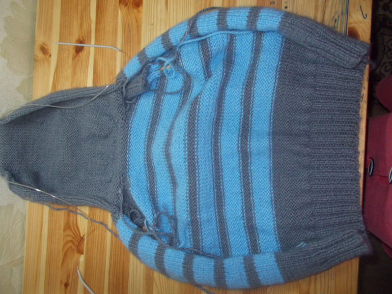 Вязание спицамиНу очень хотелось что-то связать своим мальчишкам. Начала вязать шапку, для старшего, но ошиблась в количестве петель и начала вязать кофту для младшего.