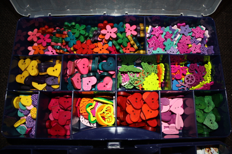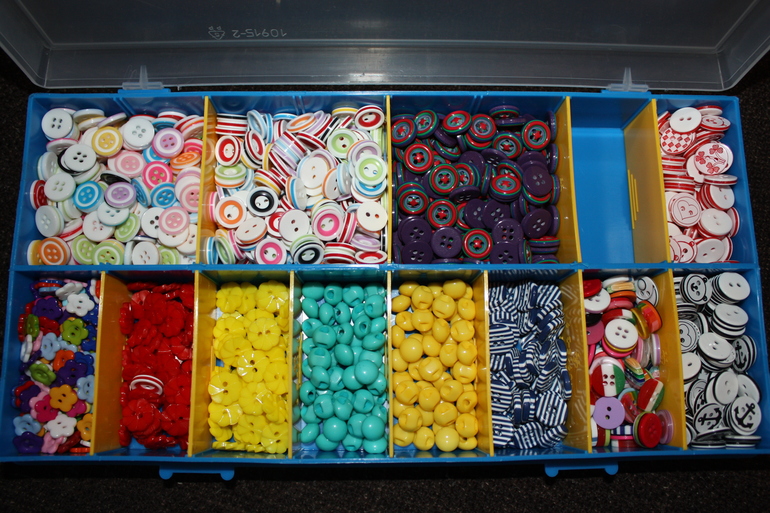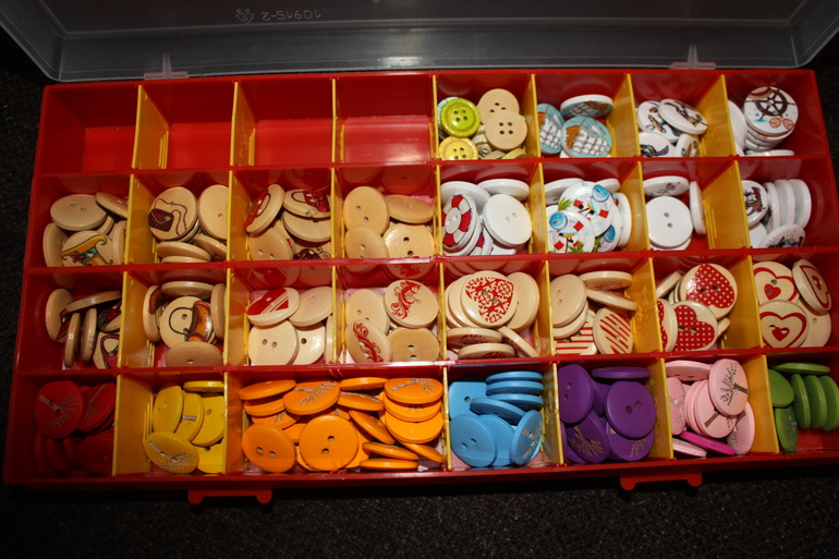 До конца я так и не осилила свои разборы, но уже осталась небольшая часть для разборов. А теперь фото поближе. Должна сказать, что самые лучшие и удобные коробочки оказались "ПРОФИ-12". На фото они с серым и синим основанием. Глубокие ячейки, закрываются отлично. Просто влюбилась в них. Хотя для каждого товара удобнее свои коробочки. Смотря какого товара сколько штучек и какое там разнообразие по миксу для разбора по ячейкам. Долгооо искала нужные коробочки, кот подходили бы именно к каждому виду пуговок.. Но вроде получилось подобрать. Если кому-то что-то конкретное стало интересно, то пишите. Если смогу, то подскажу где брала.