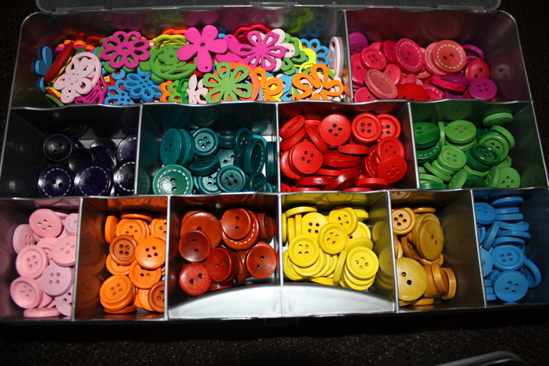 Это пуговки с моно цветами.. там в пакетиках по 100-200 гр и в др. уже по 300 гр. Т.е. для одного цвета нужна целая коробочка. Есть ли в этом смысл плодить так много одиночных коробочек даже не знаю. А одной коробочки с такими большими и глубокими отделениями пока не видела. Так что пусть пока так и лежат..