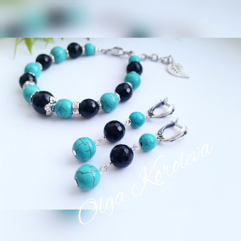 Бижутерия для слингомам. Слингобусы. Грызунки.Люблю такие лаконичные украшения. Черный агат и молочный/бирюзовый говлит на ювелирном тросике с цепочкой-удлинителем. Серьги мельхиоровые с посеребрением, английский замок.