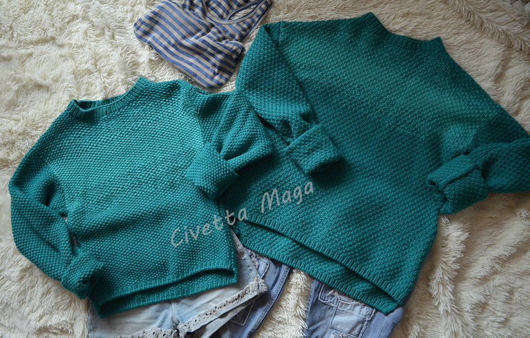 спасибо. а схемы нет, сама строила простую выкройку на себя и ребенка по нашим меркам, все просто, это оверсайз прямоугольные спинка и перед с убавками для горловины для своих мерок и с расчетами по образцу связанному, рукава тоже почти прямоугольные с убавками для своих выкроек. особой точности в выкройке не требуется. мешковатые вещи.