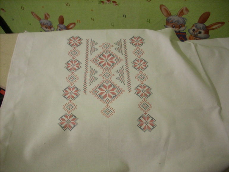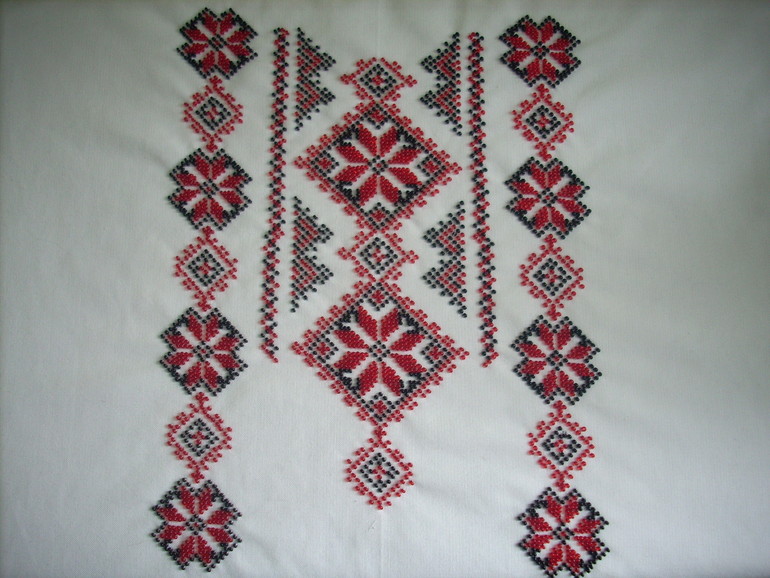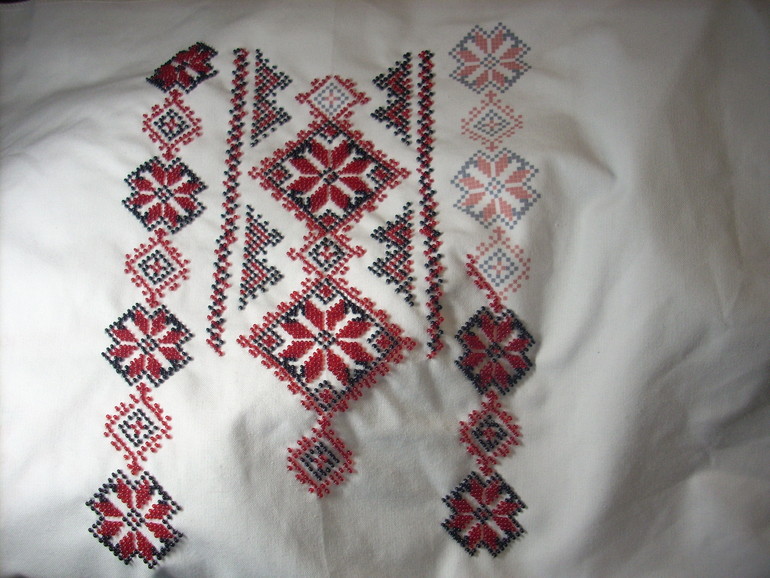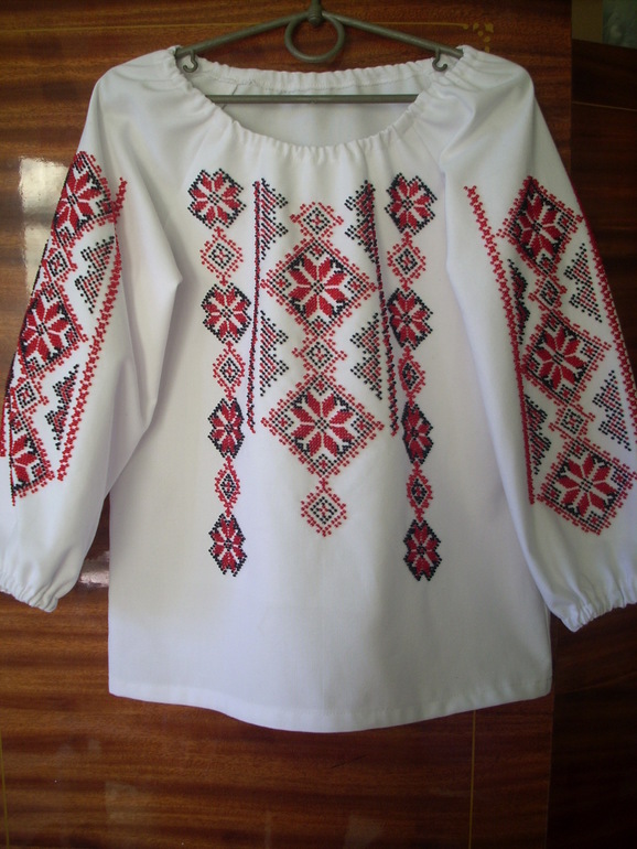 Когда выбирала заготовку , хотелось чтоб вышивка была со смыслом. выбрала именно эту- потому что считалось, что красный цвет наполняет человека позитивной жизненной энергией и символизирует энергию солнца, а черный- символ земли и плодородия. Восьмиконечную звезду -символ Солнца вышивали как на мужских так и на женских вышиванках. Как символы материнской и отцовской энергии их принято было наносить на детскую рубашку в качестве оберега.