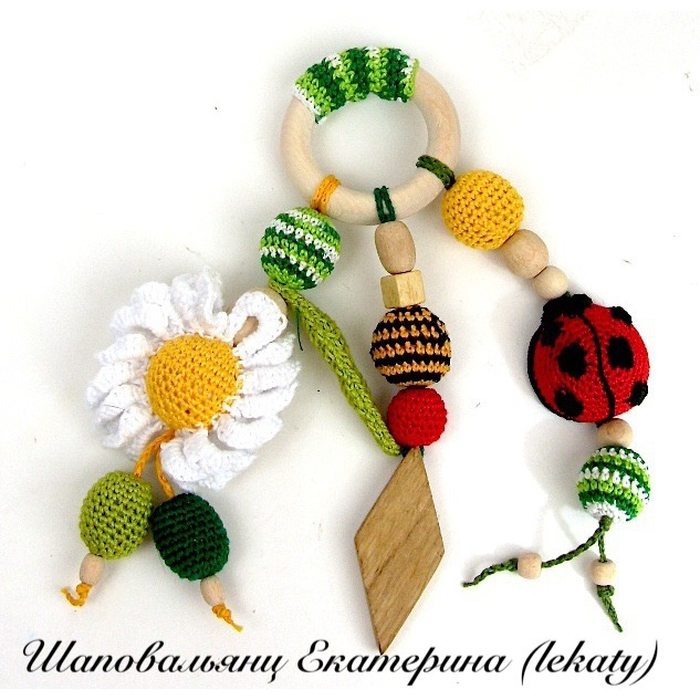 Начнем... Связались у меня вот такие грызунки- погремушки, яркие, красочные и абсолютно летние)) В 1-ом гремит божья коровка, в других - ромашка, листики шуршат. Под катом еще фото
