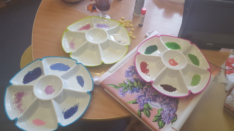 Так они же большие. У меня тоже есть такие тарелочки, но они у меня для кухни. Заходите лучше ко мне за баночками для бисера, они гораздо удобнее. А то, если я вот так рассыплю, то все, каюк, через полчаса или на полу будет или все перемешается или еще чего произойдет. А баночка закрытая, даже если сбросят (некоторые шилопопы), то ничего не произойдет.