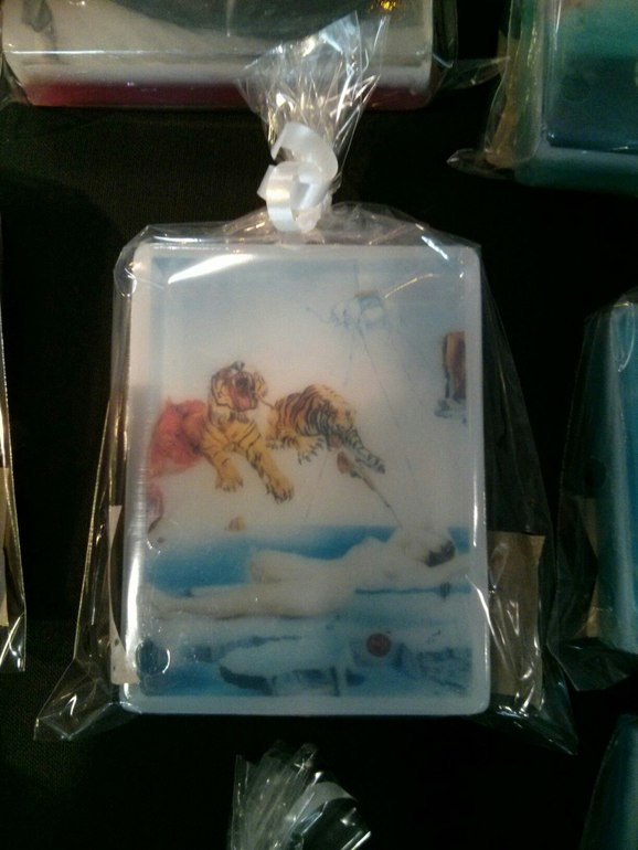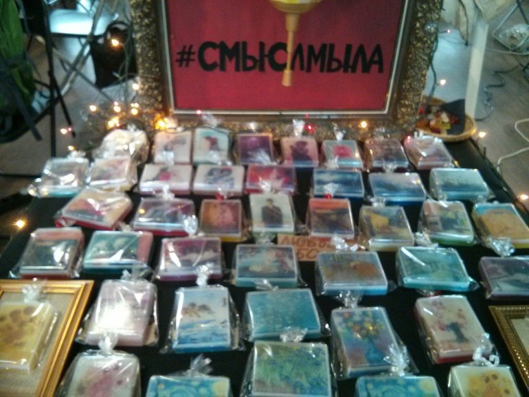 Кстати о покупках! В моем арсенале три маленьких подарка: бальзам для губ (с маслом Ши, мммм), мыло ручной работы с репликой картины Сальвадора Дали и игрушка-ёжик для пальчиковых игр с ребенком.
