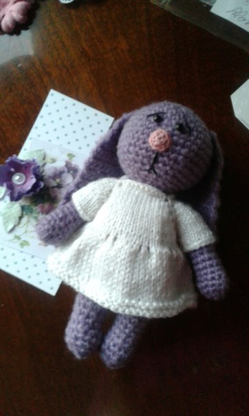 Малышка росточком 12,5см,связана из пряжи Бегония,набита плотненько синтепоном.Сидит и стоит с опорой.