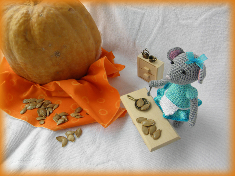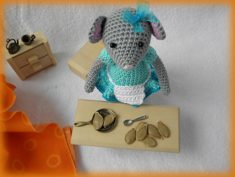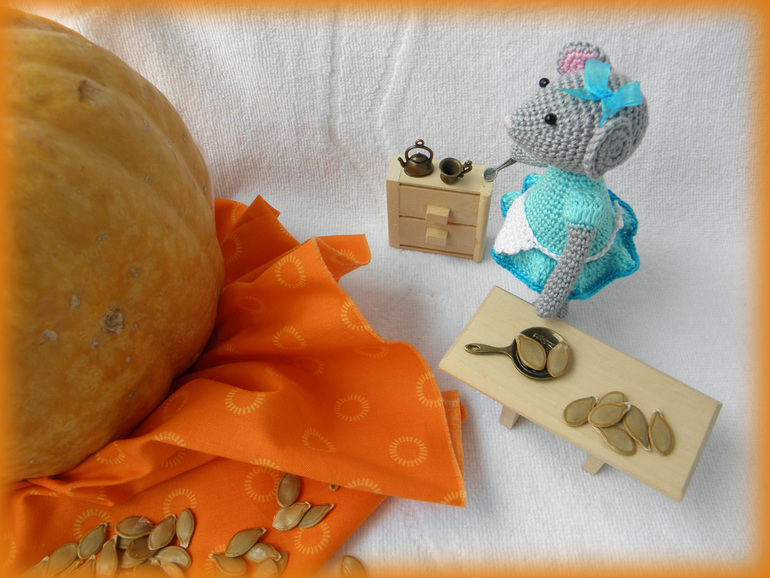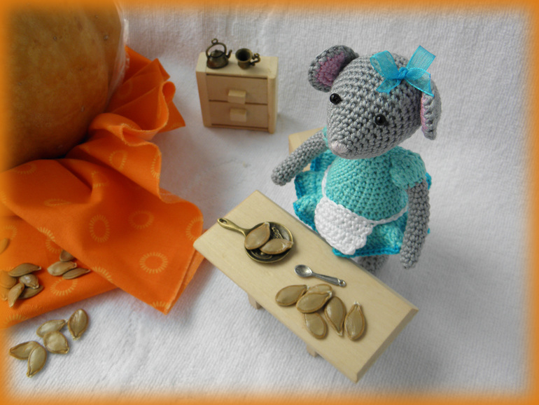 Притомилась наша мышка после приготовления вкусного тыквенного обеда и присела отдохнуть)