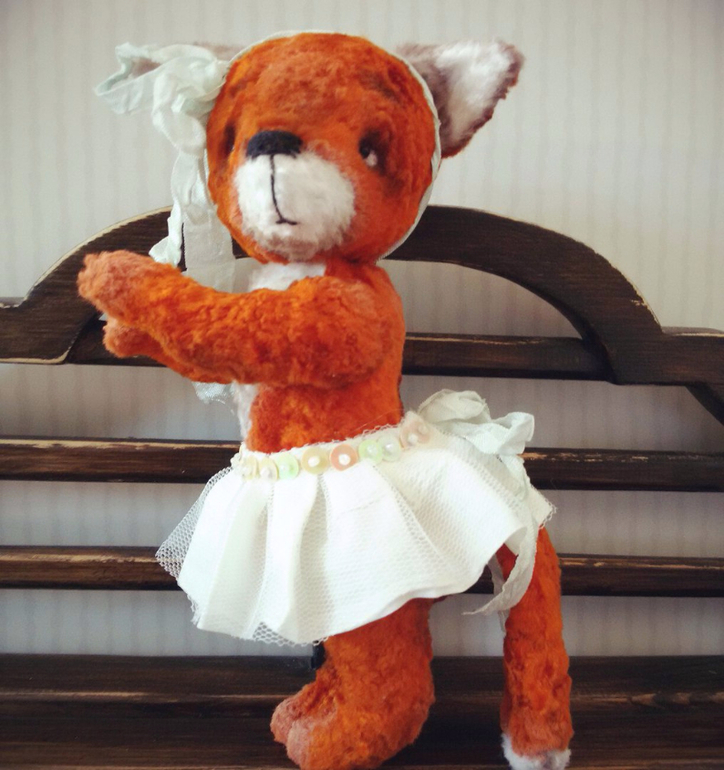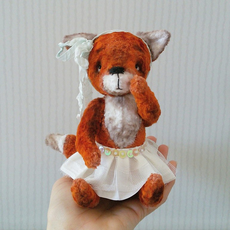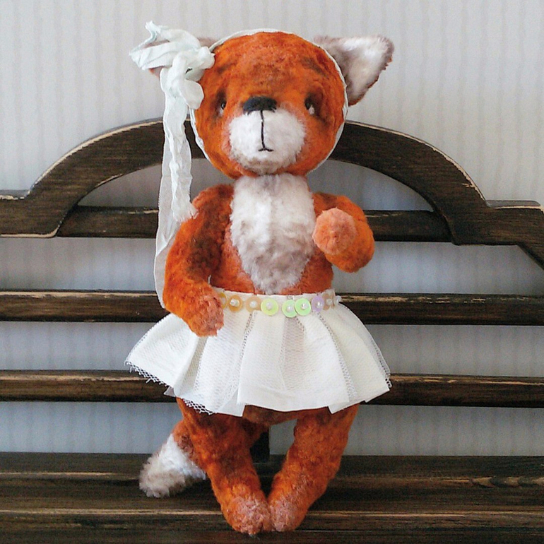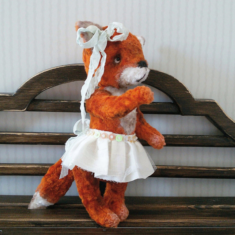Она мечтает стать балериной! Она грезит Большим театром и сценой, а пока учится в лесной балетной школе. Настоящей пачки пока нет, но наряд вполне подойдет для юной примы! Лисичка такая милая и трогательная, что из рук выпускать совсем не хочется, а хочется обнять и погладить по головке!