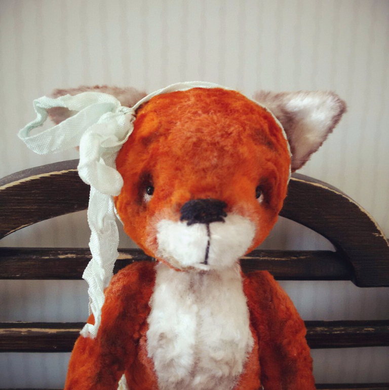 Сшита лисичка по моей авторской выкройке из винтажного плюша (Советского), набита опилками и металлическим гранулятом. Голова и лапы на т-образных шплинтах. Тонирована маслом. Глаза стеклянные ( Германия ). Лисичка ростиком 19 см. На головушке - шебби-лента, юбка из кружевной ленты, расшиты пайетками и бисером. Все что я люблю!!