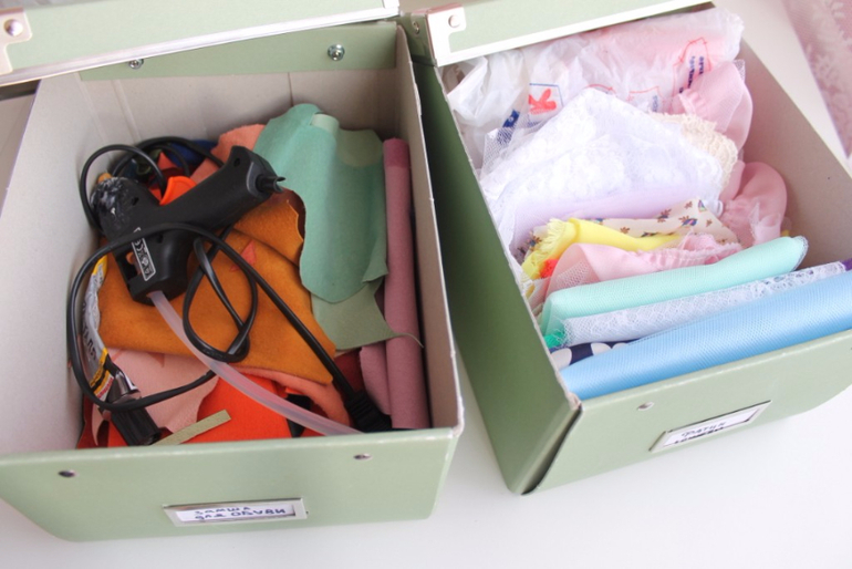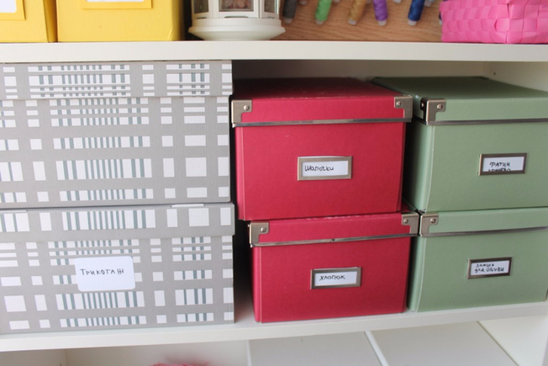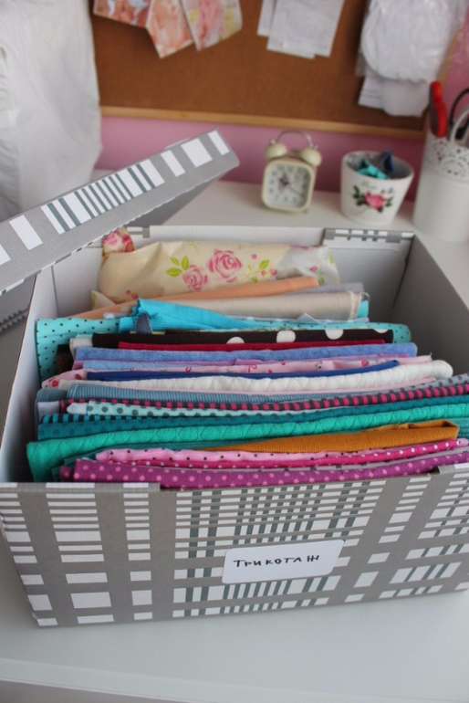 Очень удобны в хранении тканей и прочих материалов вот такие коробки.