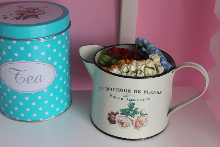 Леечка хранит в себе бумажные цветочки.