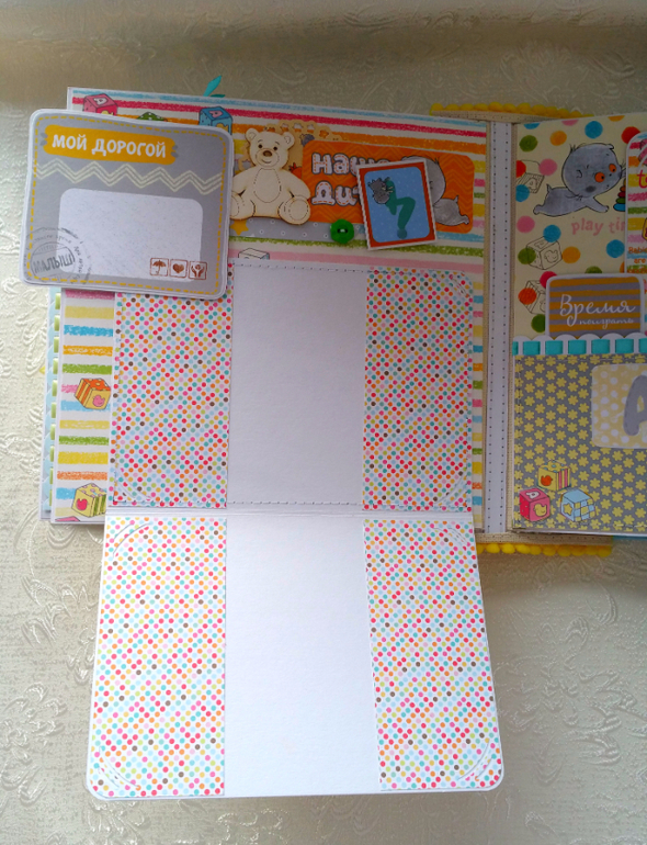 Всем привет. Давно я уже тут ничего не показывала, все как то откладывала... И вот сегодня хочу показать вам альбом который я закончила делать 31 декабря!) Да, да в то время когда все крошили салаты и закуски готовили на новогодний стол я доделывала альбом.) Размер альбома 19*19 см, вмещается 60 фото размером 10*15. Тканевый переплет, в основе страничек 300 гр. картон, странички выполнены из скрапбумаги ScrapBerry's коллекция "Веселое детство". Видео обзор альбому можно посмотреть здесь.. Ну а дальше очень много фото: