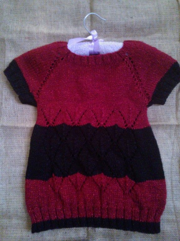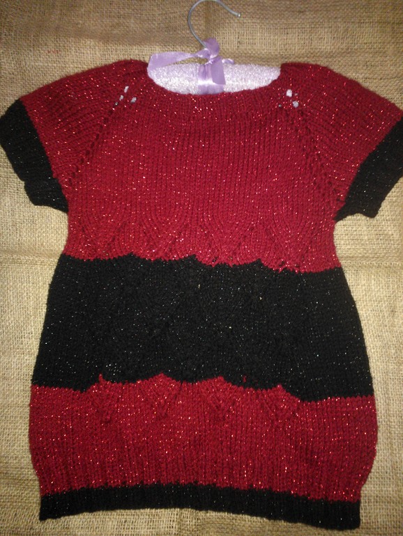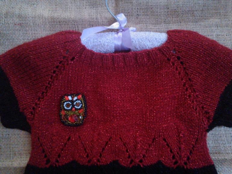 Я учусь вязать для моих девочек. Моя первая кофточка (комом).Не много намудрила с горловиной.