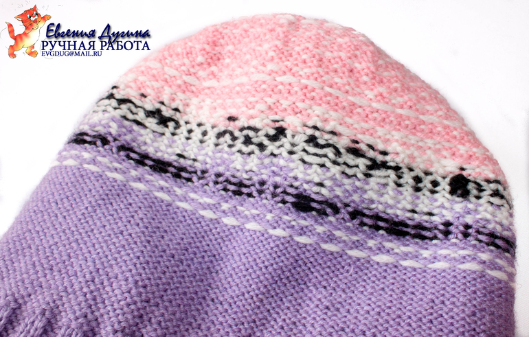 При вязании использовала технику вязания жаккарда без протяжек. Для меня это ново, сложно, но результат!!!!..... Я очень довольна. Смотрите, что получилось с изнанки)