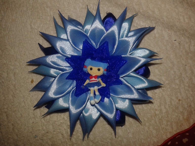 Цветы из ткани и форма. Канзаши. Украшения для волос.Знакомая попросила сделать для доченьки бантик на др, а оно у нее сегодня, единственным пожеланием был синий цвет, под платье (платье к сожалению не видела), и после некоторых терзаний, особенно с серединкой, вот что получилось