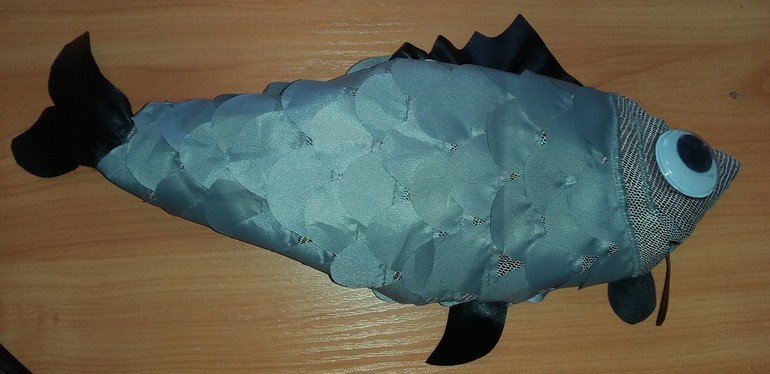Из капюшона летней куртки выкроила 2 детали тушки рыбы: