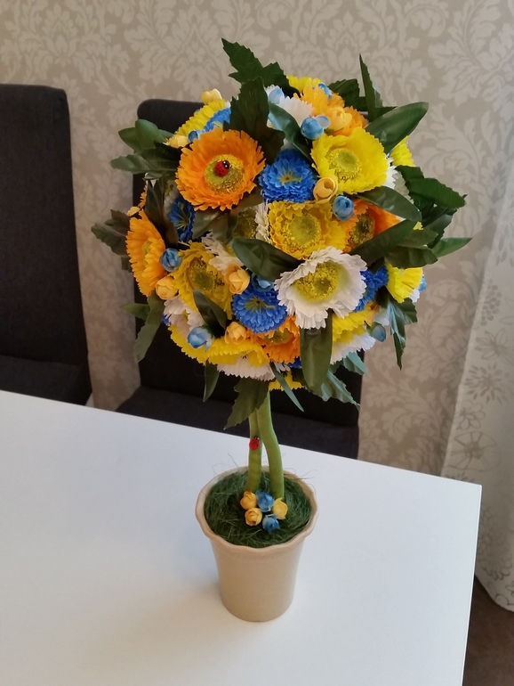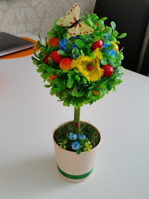 Не совсем не сложно ...только я шар большой взяла и ушло много цветов .... посмотри в интернете полно МК по созданию таких деревьев ...
