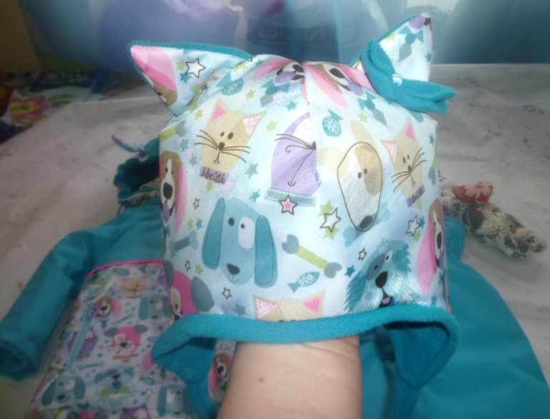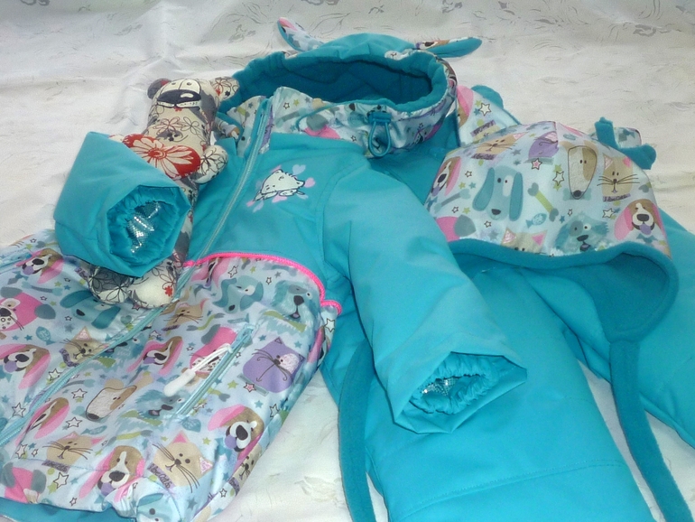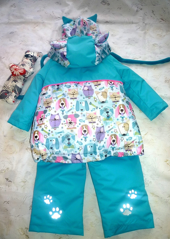 Шитье одежды, выкройки, ремонт одежды, шторы, швейные машины (уже приобретенные)Вот такой лазурный со зверушками сшился комплект для Ангелины на ростик 76-78 см