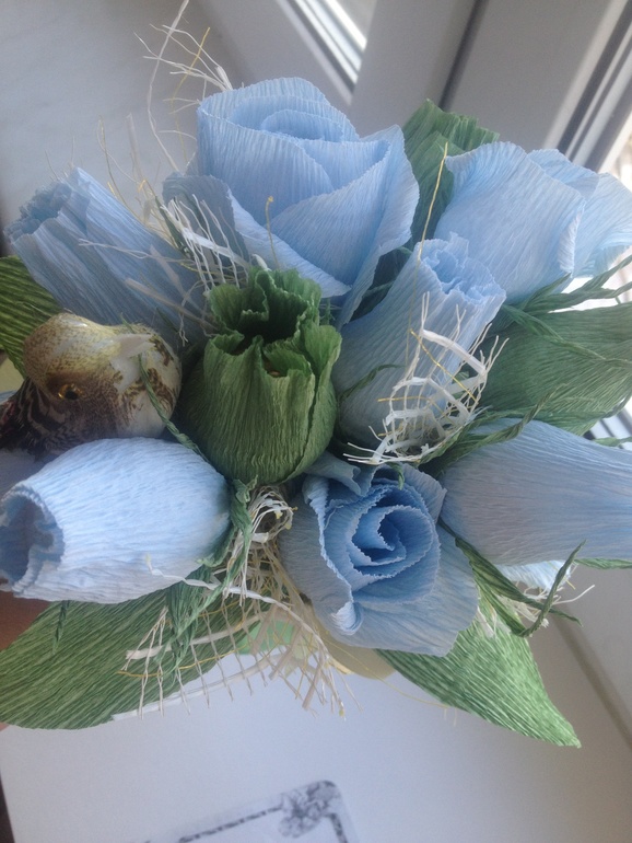 Букеты из конфет. Свитдизайн.Запаслась 3 рулонами флористической бумаги и сделала пару весенних. Очень понравилось сочетание голубого и зеленого, так по весеннему)
