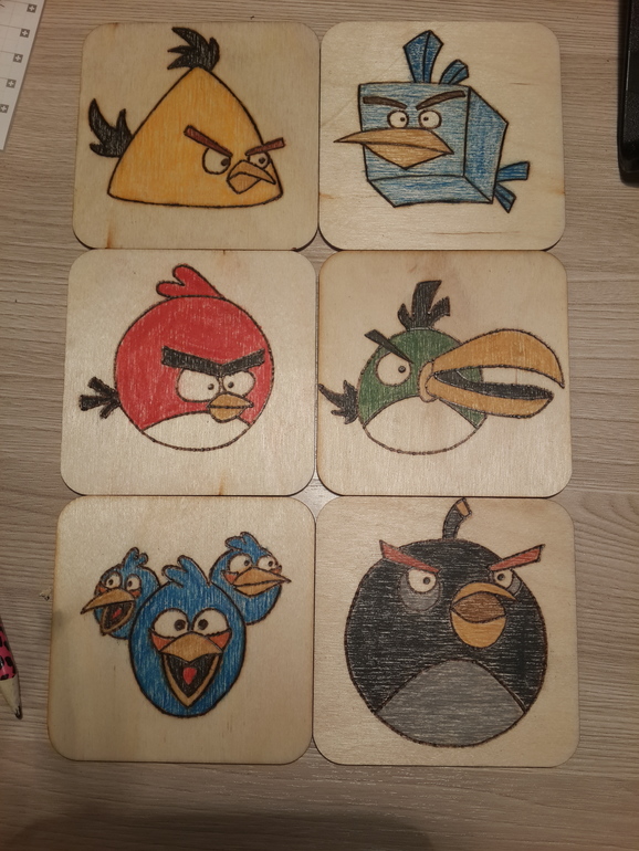 Работа с деревомСотворили с сыном набор таких подставок под кружки. Я рисовала и выжигала, он раскрашивал. Идею с рисунками сын выбрал сам. Вот теперь не знаем чем покрыть? Лаком вроде нельзя, потому что кружки горячие. Кто знает чем можно покрыть?