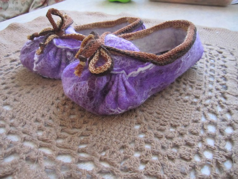 Фелтинг (валяние шерсти)Вот такие тапочки- балетки создались из войлока ручной работы