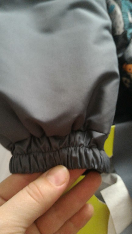 Резинкаившита в пояс. Когда верхний слой сшила с утеплителем, потом отрезаю резинку нужной ширины, сначала закрепляются её с двух сторон как показано наифото слева, а потом растягивают на необходимую длину и скплываю. Прошиваю прямой строчкой, но можно и зиг-загом. Это дело вкуса. Растягиваю, прошиваю участок, снова растягивают резинку вместе с тканью и снова прострачиваю. Ширина резинки на поясе 20 мм. В манжетах ширина резинки 35 мм.