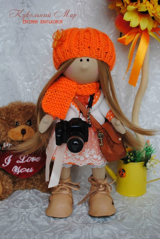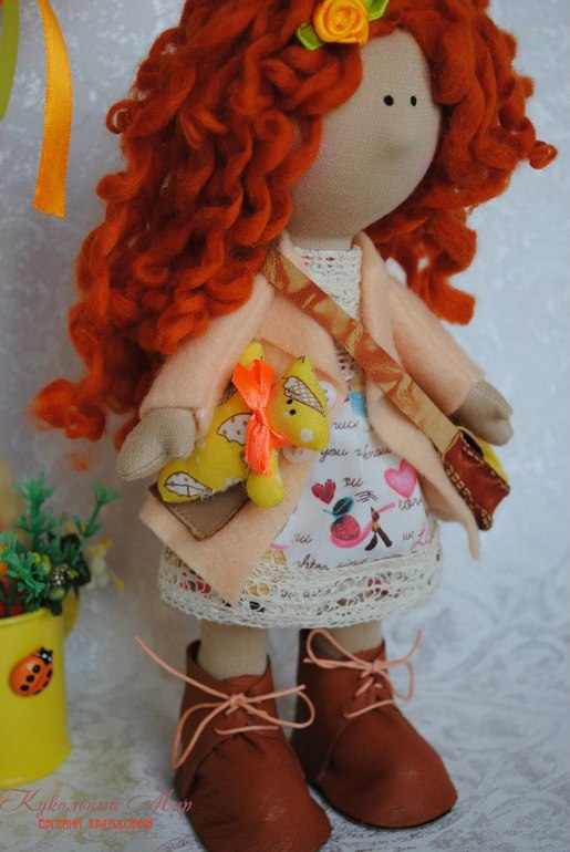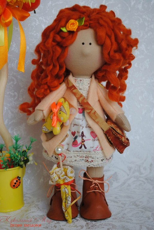 Куколка Алиса маленький солнечный рыжик)) с зонтиком и мишкой