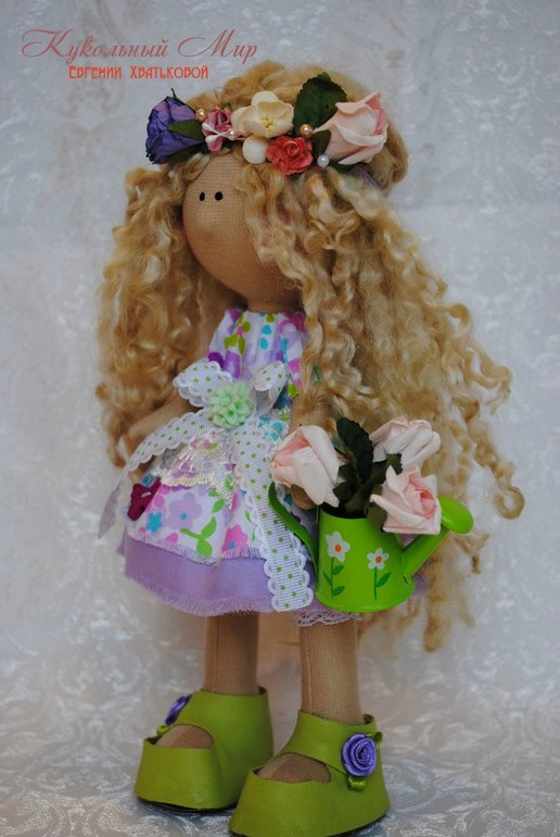 Девочка-весна. Волосы из натур овечьих кудряшек.