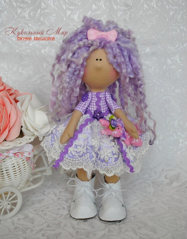 Мальвина. С зайкой. Волосы тоже-кулри овечки машам.
