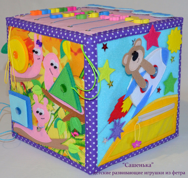 Развивающие игрушкиИ снова я сшила развивающий кубик в подарок на годовасие малышу))) Некоторые идеи брала здесь, на ББ! Далее много фото!