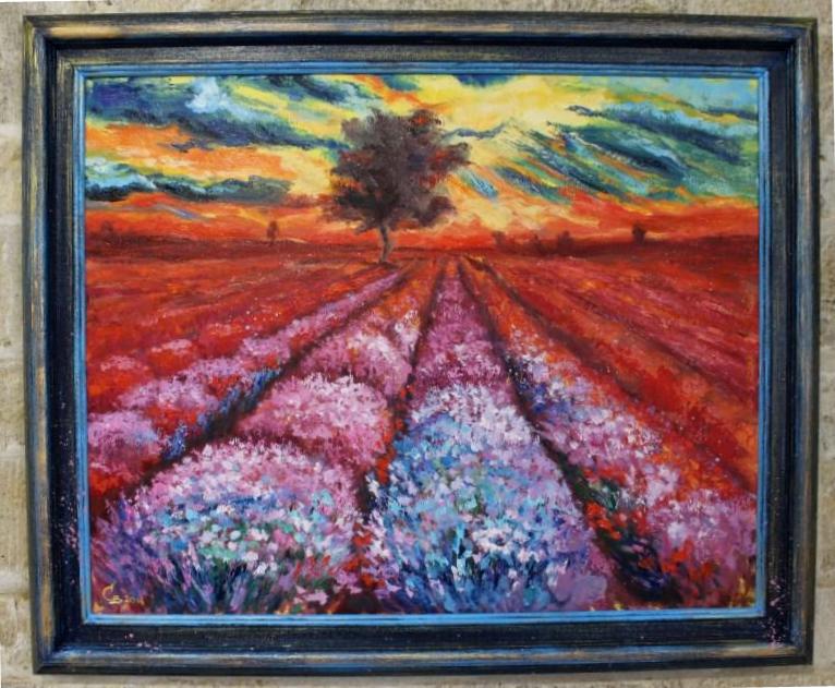 Недавно написала маслом две совершенно разные картины с лавандовыми полями.. какие же они могут быть разные.. один пейзаж холодный, спокойный и завораживающий.. а второй огненный, страстный и горячий во время заката.. так и хочется нырнуть в это буйство красок!!