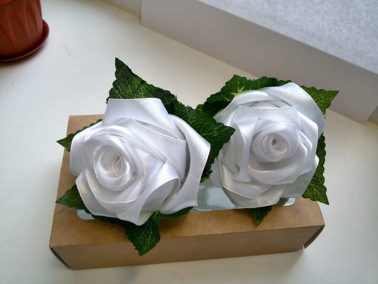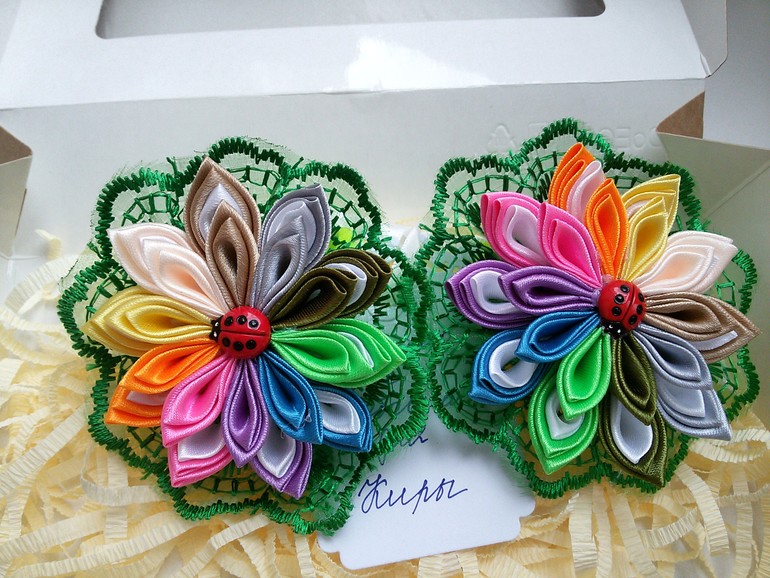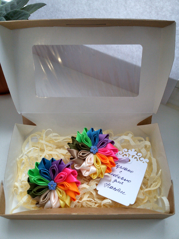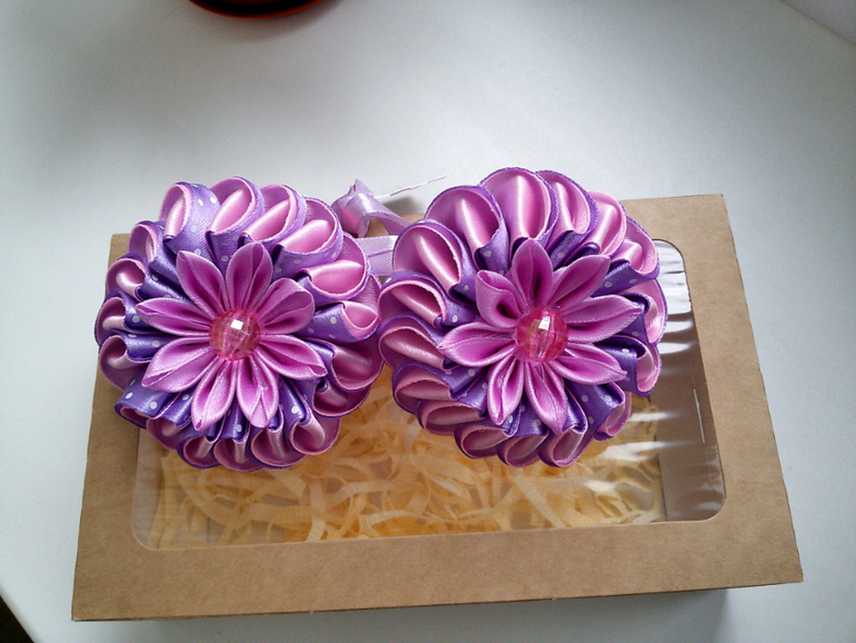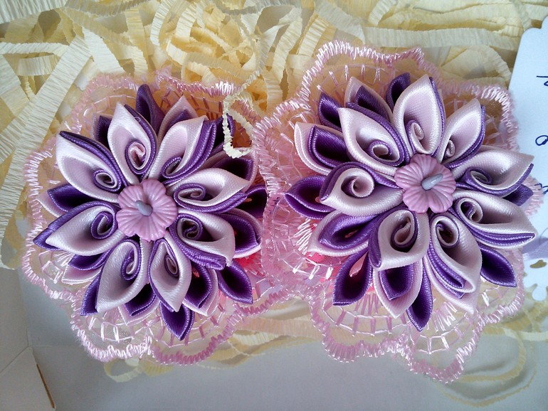 Цветы из ткани и форма. Канзаши. Украшения для волос.Привет, девочки! Писать много не буду , а просто покажу какие я приготовила подарки для девочек в детский сад ко дню 8 марта. Утренник у нас будет завтра, поэтому и дарить будем завтра.