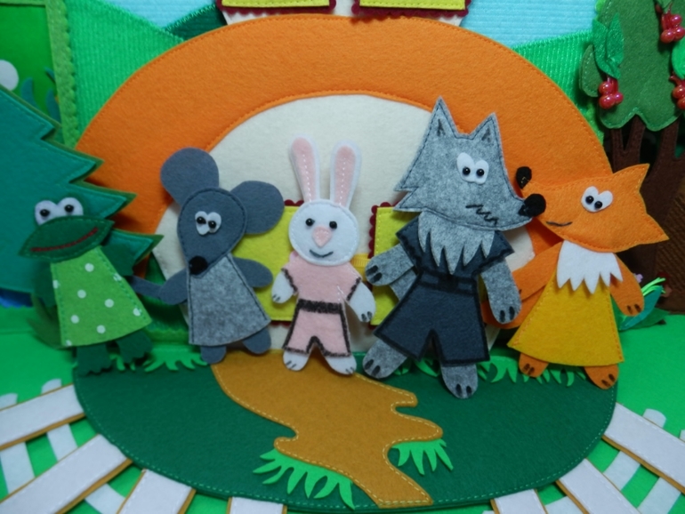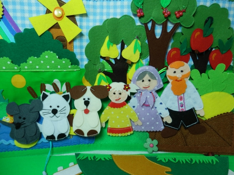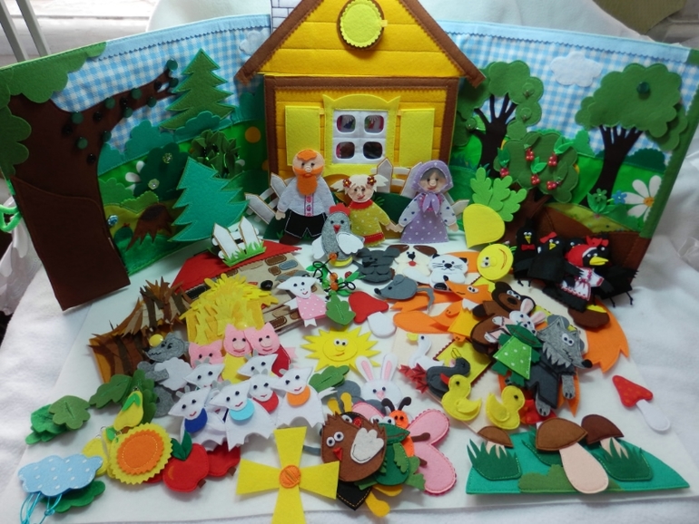 Странички подсмотрены у девочек на ВВ... чтото рисую, но без выкроек , а сразу на фетре, Репка -по выкройке Евгении Ершовой , сорока подсмотрена у Катерины Масейчук , домик у Анастасии "Ручной жираф"...а уже воплощены мной вот в такое чудо!!!