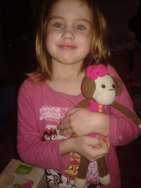Поздравляю со слоником!!! А вот и тайна открылась, кто же именно был в коробке, не слон, а очаровательная Обезьянка))) По выражению личика счастливой обладательницы она ей рада)))