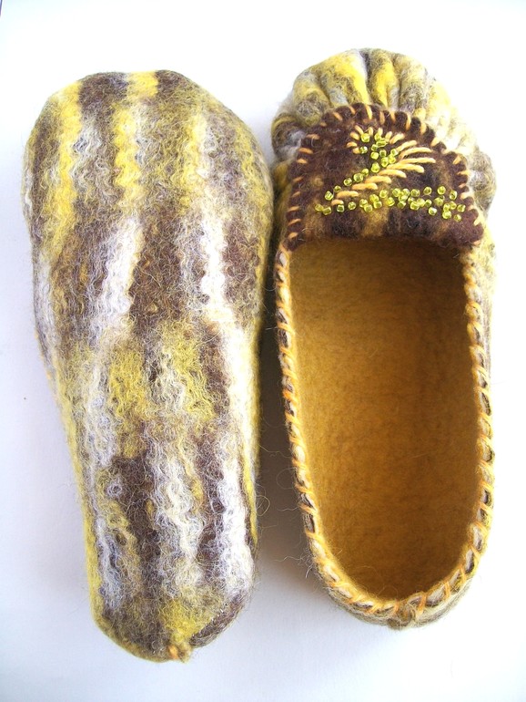 Фелтинг (валяние шерсти)Новые балетки для дома.
